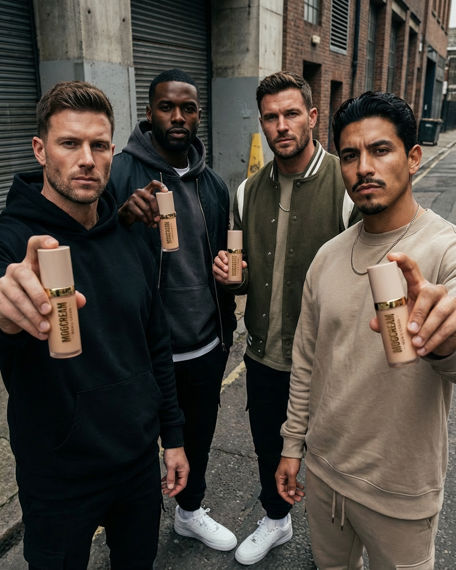 You're not trying to get caught wearing makeup. That's an instant L. MogCream goes on white and blends into your exact skin tone in seconds. No orange cast. No cakey mess. No evidence.